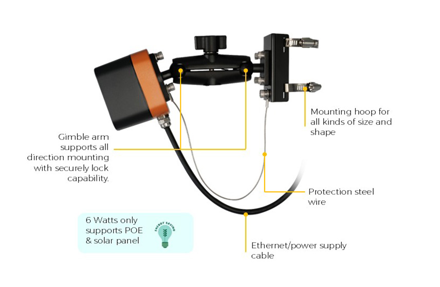 - Ultra-low power consumption less than 3 watts, supports POE, or solar panel for power supply