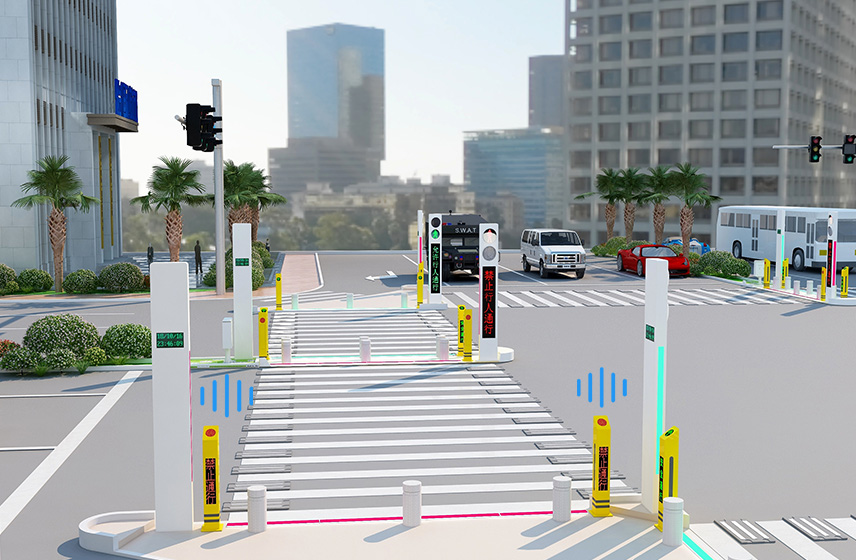 Dual-Sided Signal Lights: Front and rear auxiliary lights display real-time crossing status (solid red / green arrow).