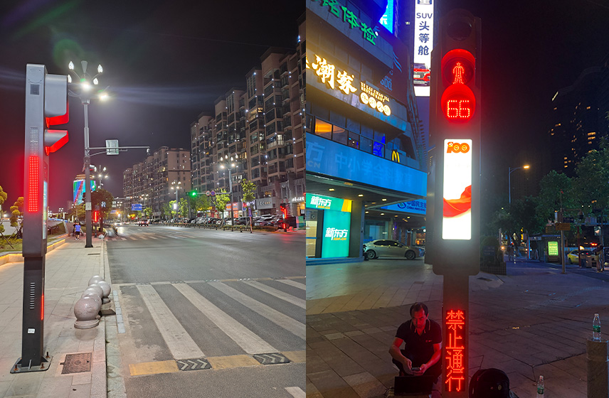 Dual-Color LED Display (P10 pixel pitch, 160*640mm): Displays content synchronized with the traffic light phase, including a numeric countdown for the final 9 seconds.